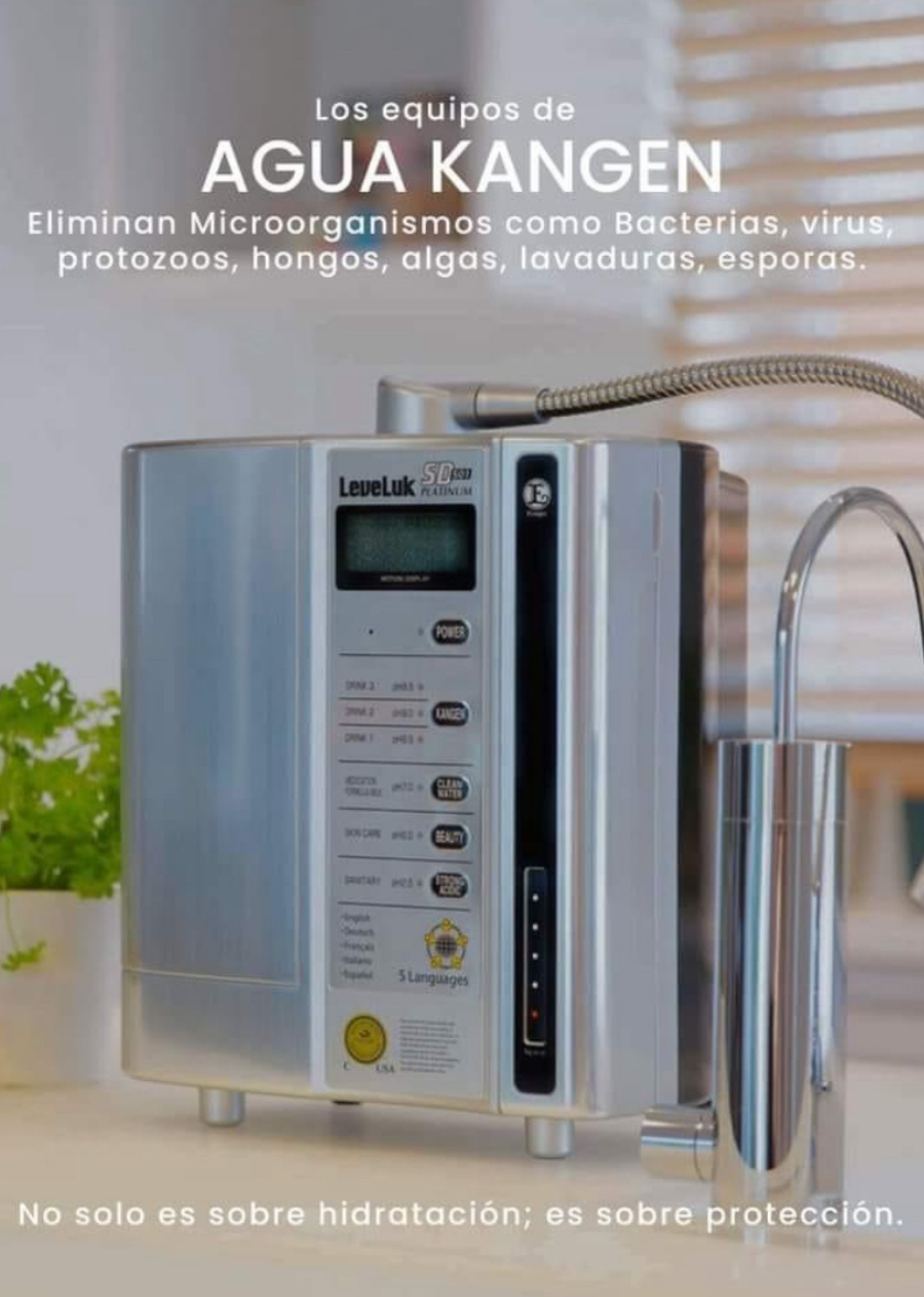 El agua Kangen, creada con tecnología japonesa de ionización, purifica, alcaliniza y revitaliza cada célula de tu cuerpo, ayudándote a recuperar tu equilibrio natural desde dentro.